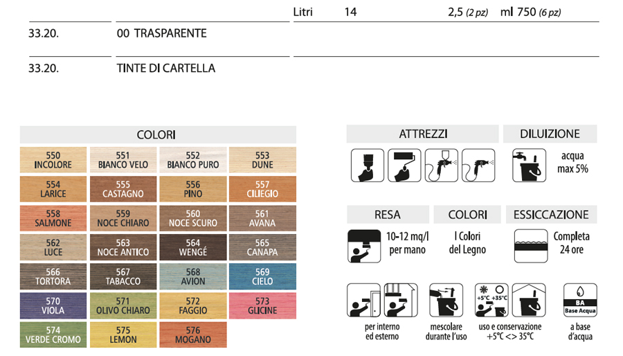 Fuori polvere: 2 – 3 H Sovraverniciabile: 24 H